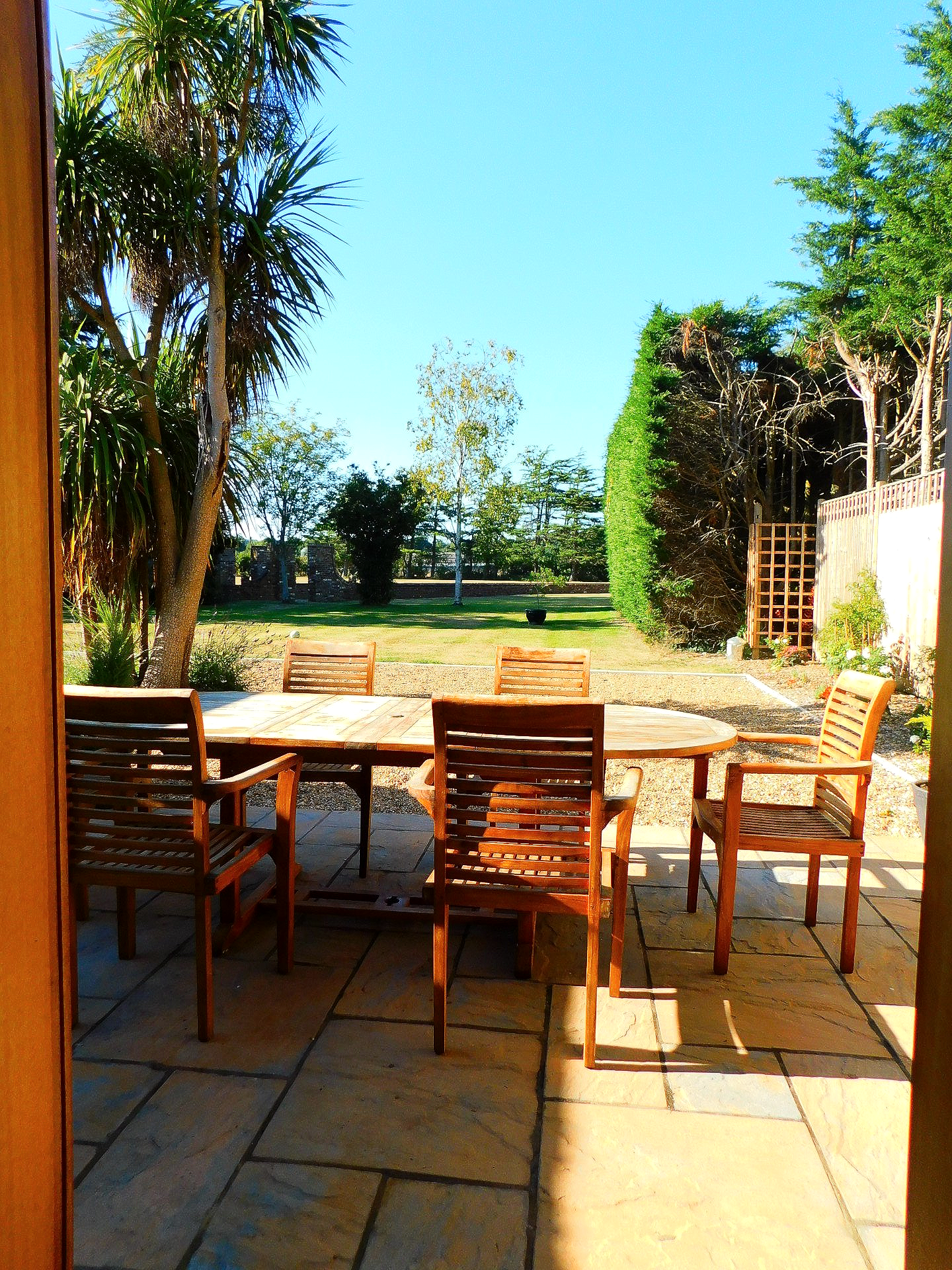 At the front of the property is a paved patio area with an outside dining table and chairs, beyond the parking area there is the large front lawn which also forms part of the holiday let, this gives plenty of space for children to play outdoors. *