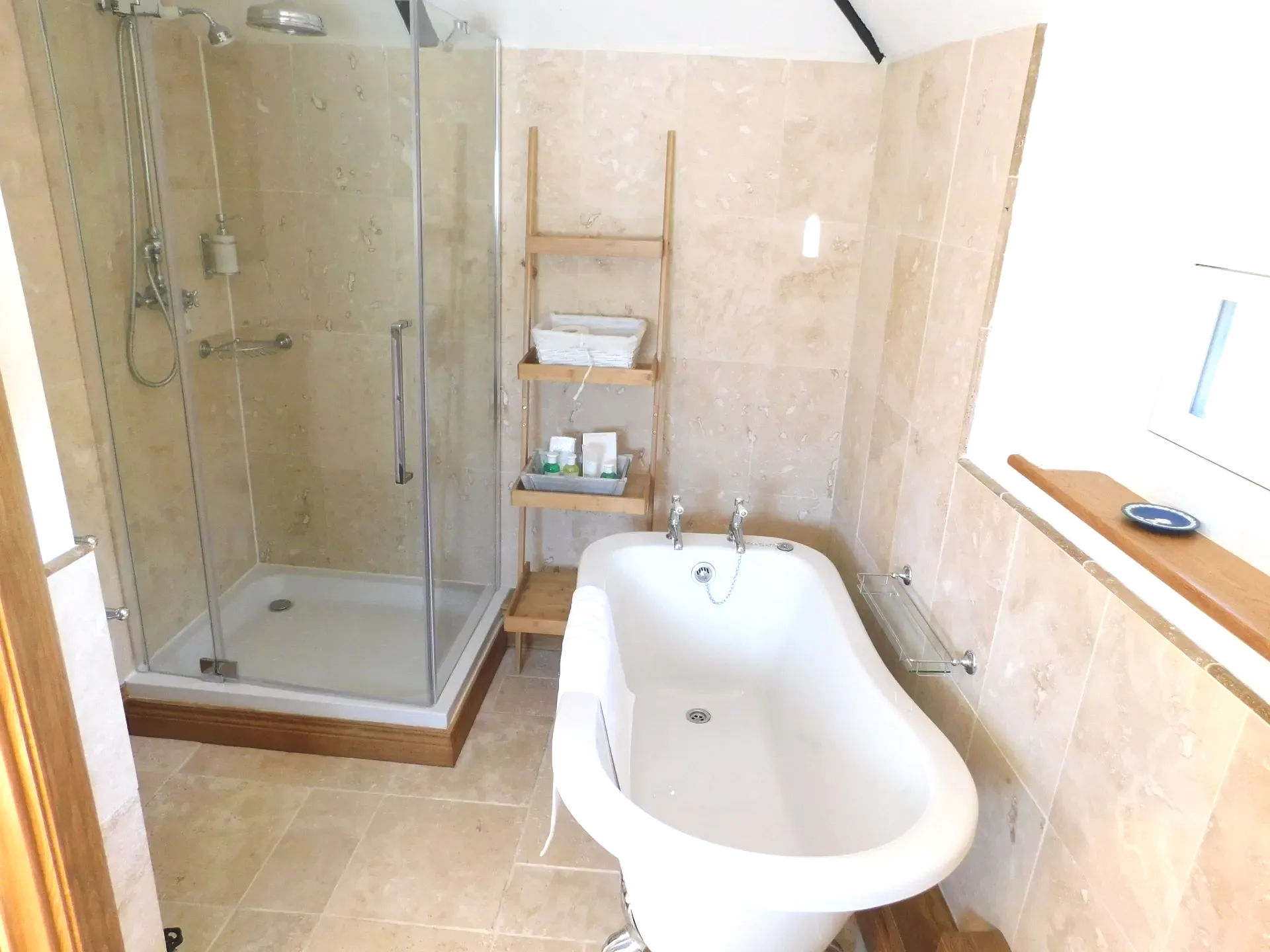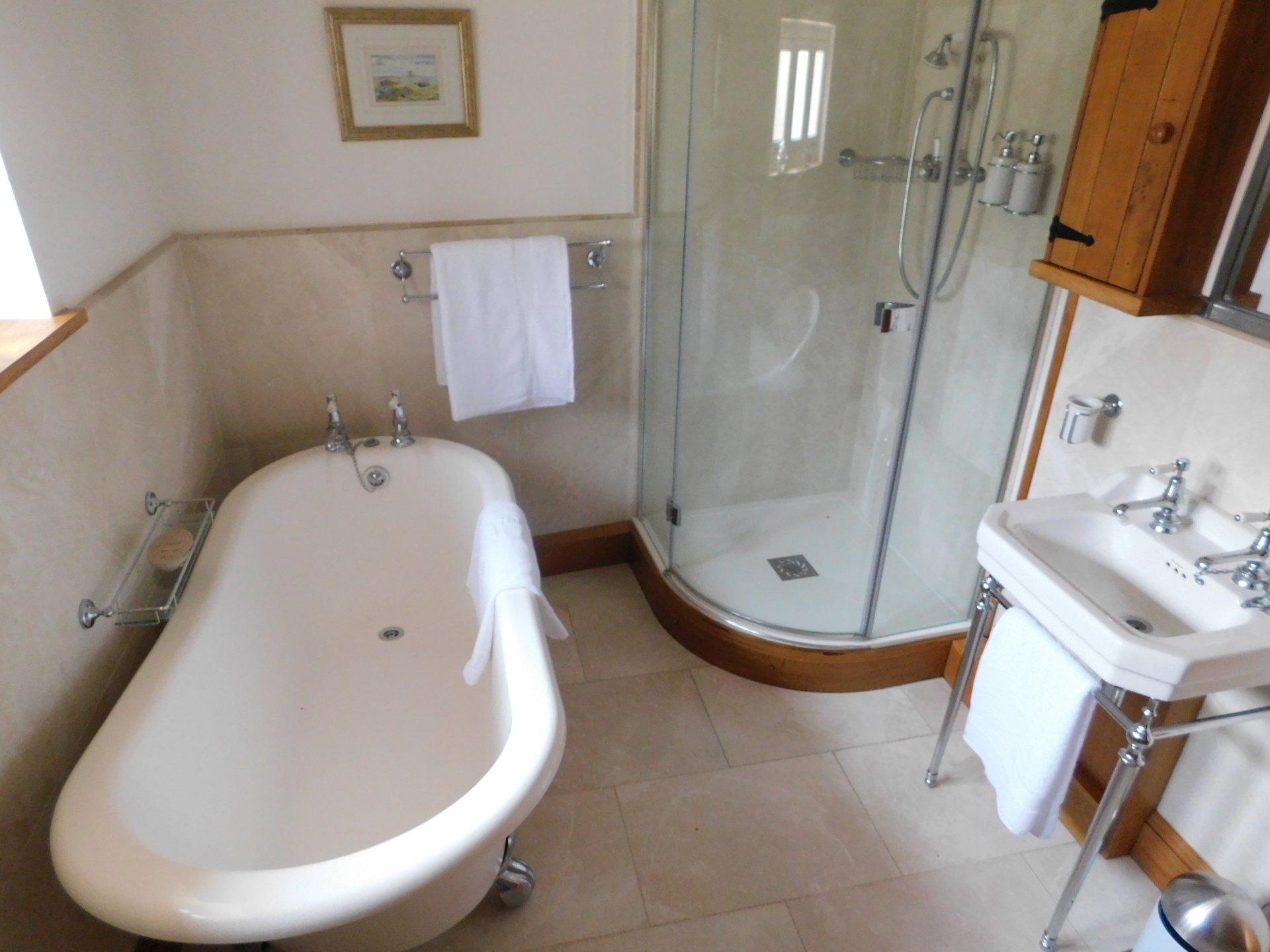 The Family Bathroom is luxuriously appointed with Burlington period fitments. The slipper bath is a centerpiece a great place for a soak and to relax those aching muscles after a day's activities.