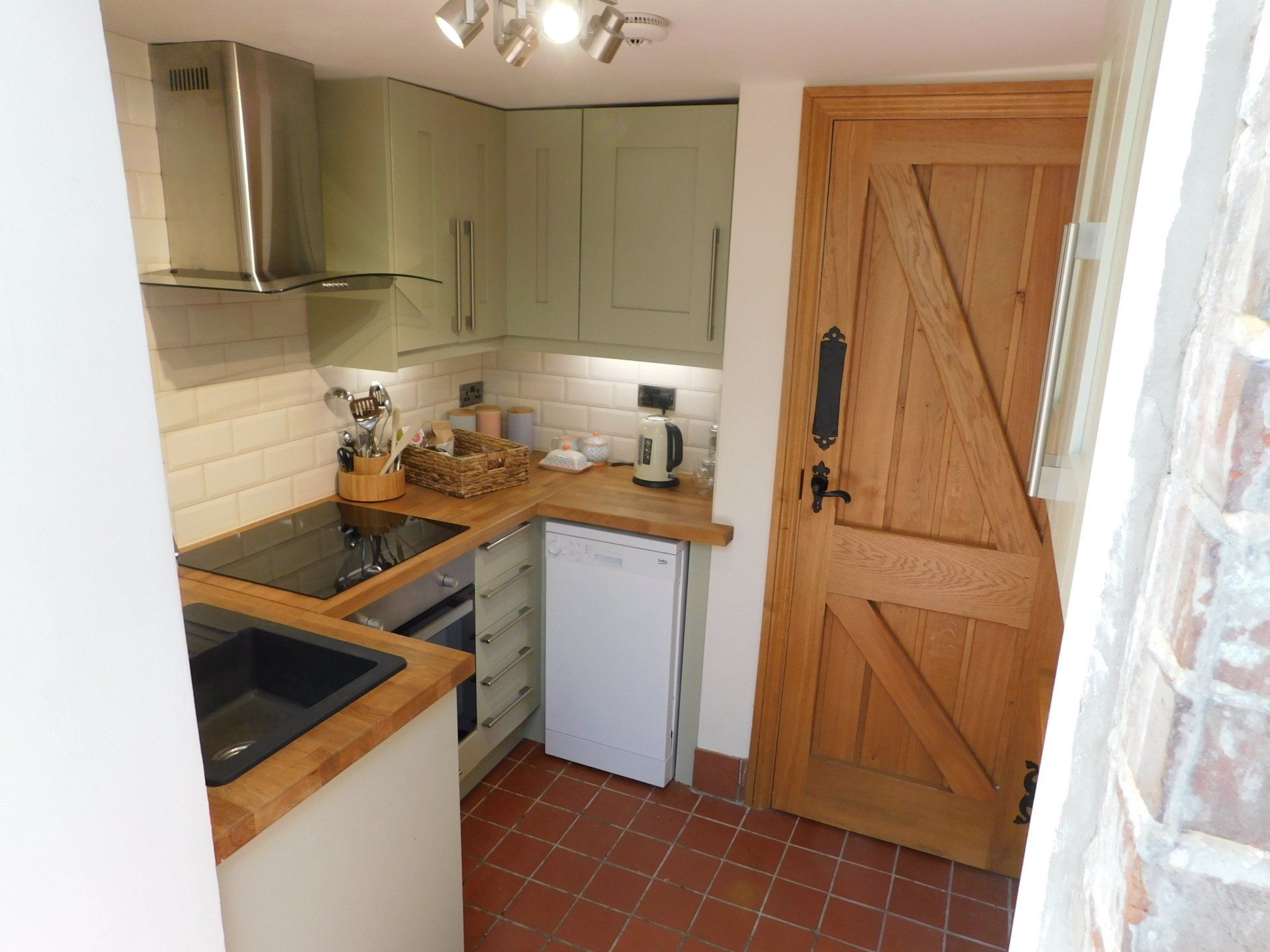 The kitchen is a compact but well equipped space with a linked utility area. Incorporating all you need to self cater, including a dishwasher and full size fridge/freezer, the utility space also has a washing machine. The utility opens onto the rear courtyard and it also offers a side entrance to the property which is useful if you are returning with wet/muddy kids, clothes,boots, bikes or dogs. It also offers a storage area for bikes and equipment.